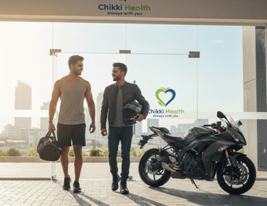 "Don't let traffic or parking stand between you and your fitness goals. With Chikki Health’s Gym Rider service, we provide a dedicated bike taxi to pick you up and drop you off directly at your gym. Fast, affordable, and focused on getting you to your workout on time